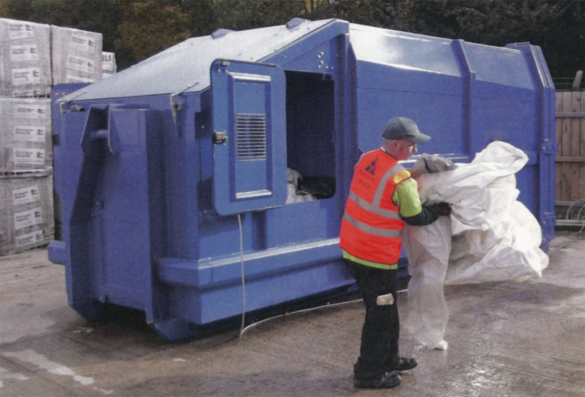 Loading doors located to both sides together with a large front/top loading door suitable for tipping skips.